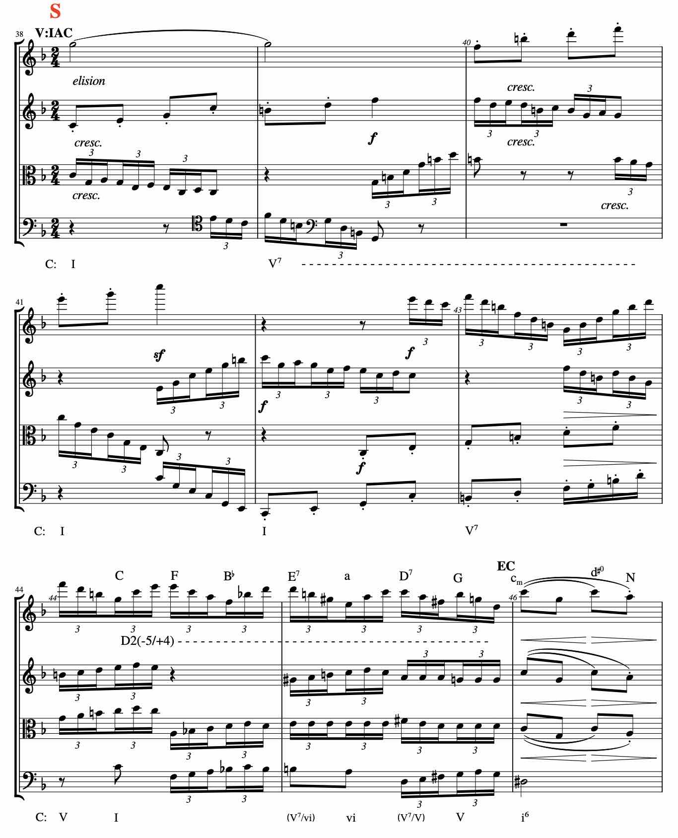 fig.14 Beethoven: string quartet op.135, i, mm.38-46