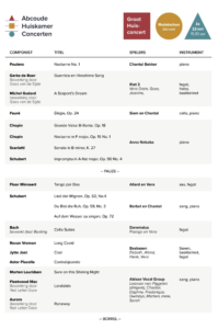 Groot Huisconcert Abcoude Gathering of musicians from Abcoude who play their favourite pieces for each other. + Add to Google Calendar + iCal / Outlook export 00 days 00 hours 00 minutes 00 seconds Date Mar 22 2026 Time 15:00 - 17:30 Location Muziekschuur Abcoude Kerkplein 33, Abcoude, Netherlands Category Cello and Piano Concerts Organizer Chantal Bekker Phone +31 6 24116445 Share this event Recent Posts Haydn: string quartet op.33 no.1: an analysis of the recapitulation of the fourth movement Haydn: string quartet op.33 no.1: an analysis of the development of the fourth movement Haydn: string quartet op.33 no.1: an analysis of the exposition of the fourth movement Beethoven piano trio op.11: an analysis of the development Beethoven piano trio op.11: an analysis of the exposition Schumann string quartets: the comparison Schumann string quartet no 3 – an analysis Schumann string quartet no 2 – an analysis Schumann string quartet no 1 – an analysis A not so brief introduction to the concept of Period Recent CommentsSiem Huijsman on Schumann string quartet no 2 – an analysisJaques Étienne on Schumann string quartet no 2 – an analysis123movies on Consulted literatureArchives May 2025 February 2025 January 2025 November 2024 October 2024 February 2024 January 2024 November 2023 September 2023 April 2023 October 2022 August 2022 August 2021 February 2021 January 2021 June 2020 January 2020 August 2019